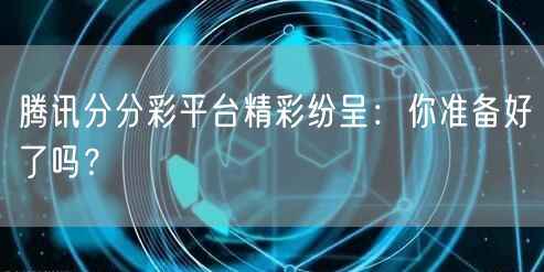 腾讯分分彩平台精彩纷呈:你准备好了吗?