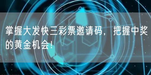 掌握大发快三彩票邀请码,把握中奖的黄金机会!